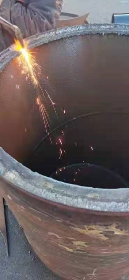 在場(chǎng)人員研究制定了搶修方案,決定不更換管道,而采用"包裹式"的方式進(jìn)行修復--在原DN700的老舊管道上包裹DN800的管套封堵漏點(diǎn),將DN800的管道切割成兩部分,分別安裝,與水泥管道接近的部分打磨成壁度在4公分以?xún)鹊墓鼙?,焊接后進(jìn)行管道碰口。當時(shí),室外溫度已降至-15℃,地溝內溫度高,地面溫度低,施工難度大。為保證快速、高效、安全完成新管套接,搶修人員只能手提工具沿著(zhù)管道貓著(zhù)腰爬到連接處,窩在管道下方,在管套與管網(wǎng)連接處焊接。
